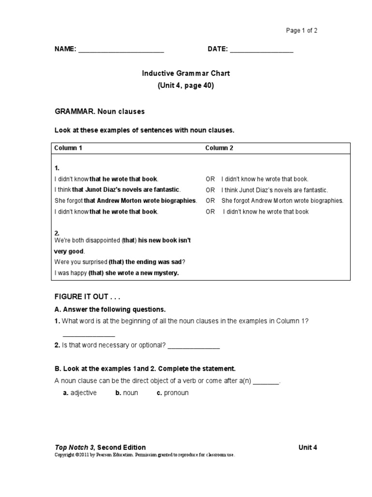 Noun Clause 2 Pdf 609395835 Noun Noun Clauses A Noun Clause Is A Exercise One 1 Put A Square Around The Interrogative Or Relative Pronoun That Begins The Noun Clause 2 Pdf Document from demo.vdocuments.mx We are a sharing community. Presumably, up until now you have been using primarily the indicative. Underline the that clauses in the following sentences. 31 downloads 193 views 211kb size. Each sentence contains one error. Today, we will review noun clauses, give some more examples of noun clauses, and then provide several quizzes to practice forming them. Identify the noun clause and state the purpose it serves. Adjective clause, noun clause and adverbial clause.